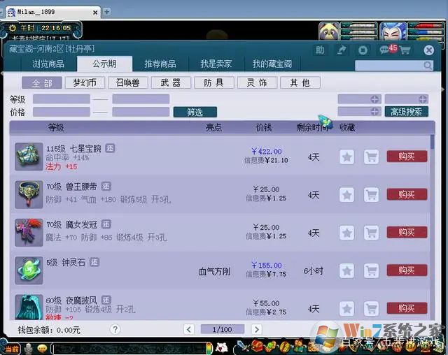 这个功能有两个,首先是可以直接买梦幻币,然后支付,然后钱就可以取出来了,很方便。只要有钱,就很方便的。其次可以使用高级搜索,这个高级搜索就是类似网页版藏宝阁的功能,想要什么条件的角色、装备、召唤兽、召唤兽装备、灵饰都可以找的到。
