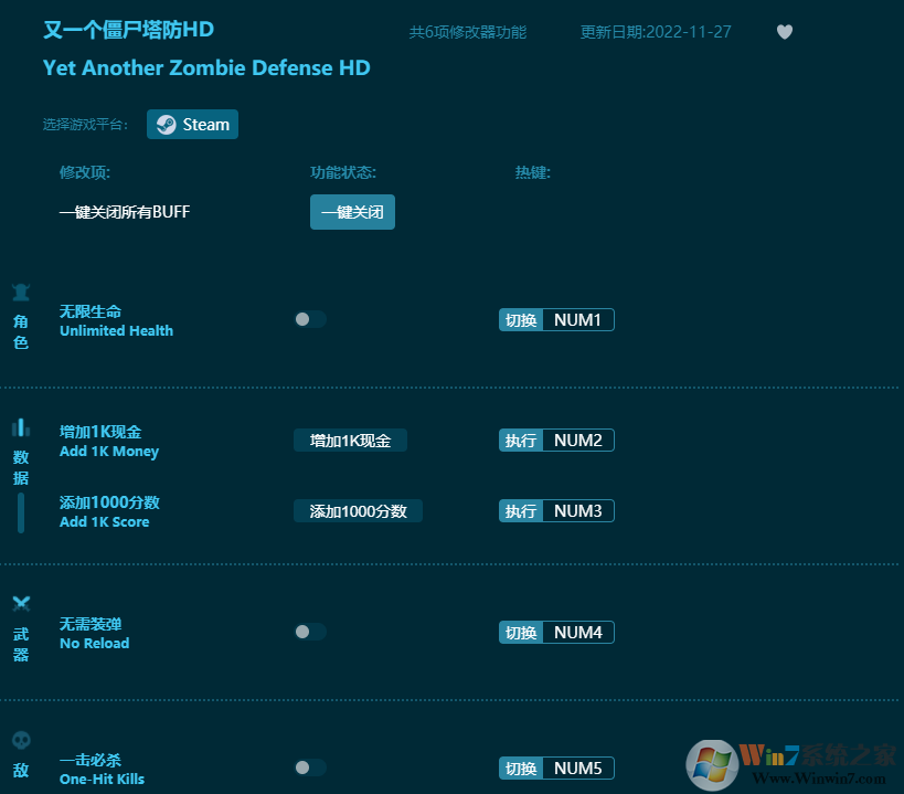 又一个僵尸塔防HD修改器功能: