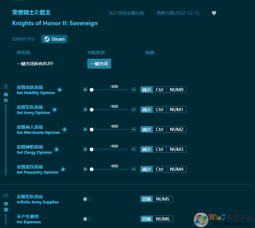 荣誉骑士2君主修改器功能: