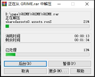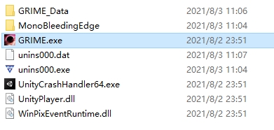 2、解压后在游戏目录中双击GRIME.exe文件即可启动游戏;