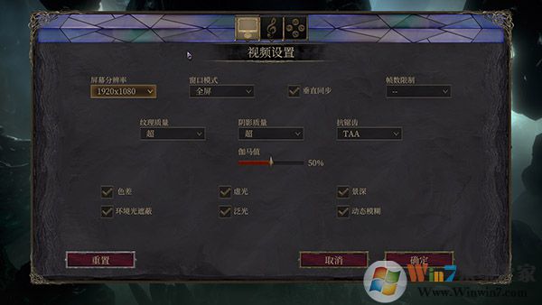 6、切换为中文后玩家观看更加方便了,可以在视频设置根据喜欢的游戏习惯进行设置,建议开启全屏、垂直同步,画质根据自己电脑性能调节;