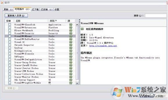 VisualVM 插件中心提供很多插件以供安装向 VisualVM 添加功能。可以通过 VisualVM 应用程序安装,或者从 VisualVM 插件中心手动下载插件,然后离线安装。另外,用户还可以通过下载插件分发文件 (.nbm 文件 ) 安装第三方插件为 VisualVM 添加功能。