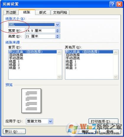 4、打开一个Word文档之后,点击页面设置 - 纸张,选择设置的自定义纸张,然后点确定;