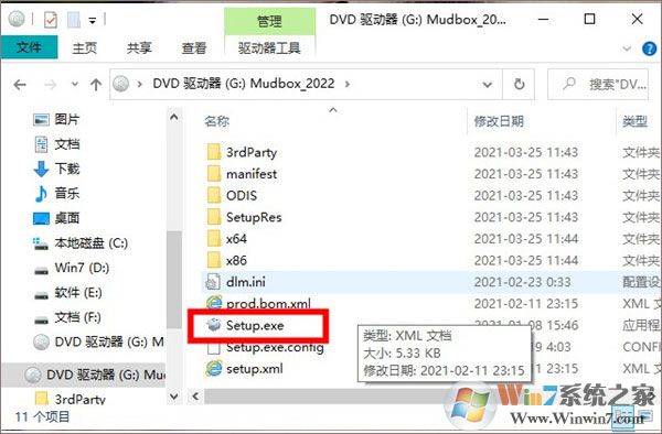 2、加载镜像文件后,双击打开Setup.exe进行安装;