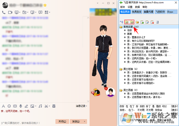 通过事先在飞豆聊天助手里编辑好经常需用到的语句,图片或文档等文件,点击字段前方的箭头即发送出去,以前同时接待3个客户比较吃力,有了飞豆聊天助手可以轻松接待10个客户以上。