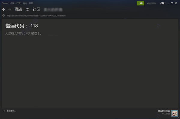 2、此时我们可以看到steam还是处于代码状态,无法进入库存。