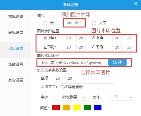 1.打开设置界面,点击水印设置, 选择模式为图片