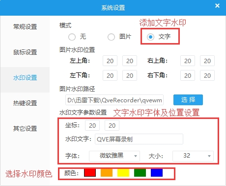 1.打开设置界面,点击水印设置, 选择模式为文字