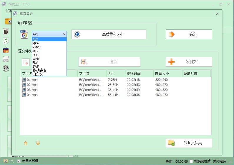 所有类型视频转到MP4/3GP/MPG/AVI/WMV/FLV/SWF。