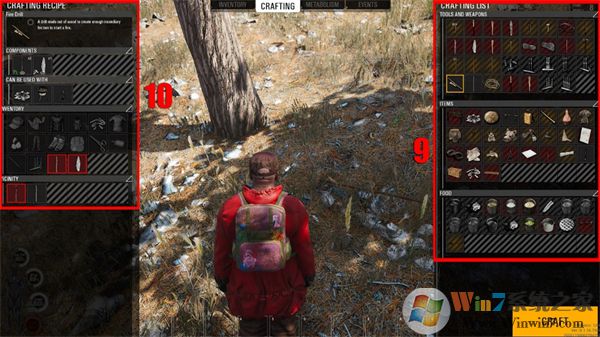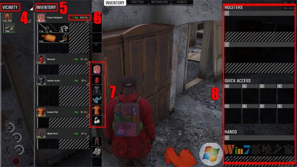 1、这是您的囚犯的状态栏,您可以在其中看到他的健康,耐力,能量和水合作用2、这是快速访问栏,您可以通过该栏访问您在库存中绑定的项目。