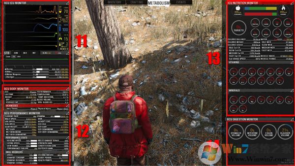13、这是营养窗口,这部分适用于想要通过跟踪所有营养以及他们的角色表现如何深入SCUM的人们。