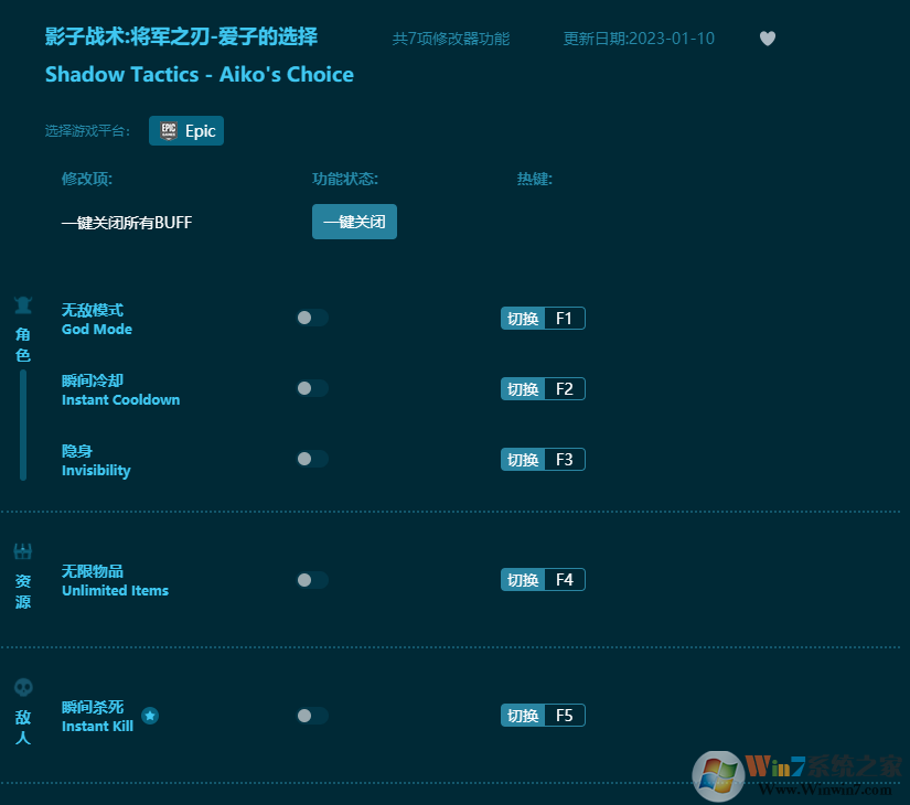 影子战术将军之刃爱子的选择修改器功能介绍: