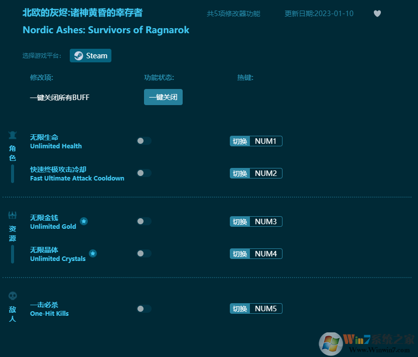 北欧的灰烬诸神黄昏的幸存者修改器功能介绍: