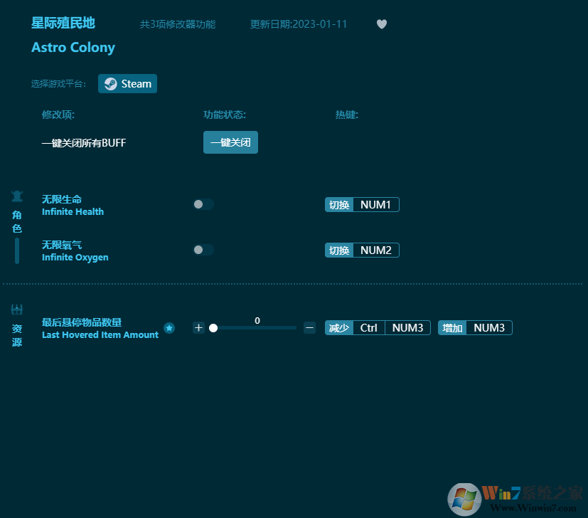 《Astro Colony》又被称为星际殖民地,作为一款包含了模拟经营、沙盒建造、探索、太空模拟类元素,对于喜欢《幸福工厂》和《戴森球计划》的小伙伴们来说,《Astro Colony》目前整体游戏完成度和优化存在不足,但这也不影响小伙伴的游玩。小伙伴们可以在游戏中尽情的探索无尽的宇宙,可以在不同的星球上建造不同的建筑,探索未知星球上的各种动植物,但也要小心其他危险生物!小伙伴也可以在星球上招聘宇航员来到你的星球上,促进殖民地的发展!非常有意思的一款游戏,感兴趣的小伙伴可以从steam入手哦!本次为小伙伴们带来是星际殖民地修改器(Astro Colony修改器),其中功能包括了:无限生命、无限氧气、最后悬停物品数量功能,感兴趣的小伙伴快来下载吧!