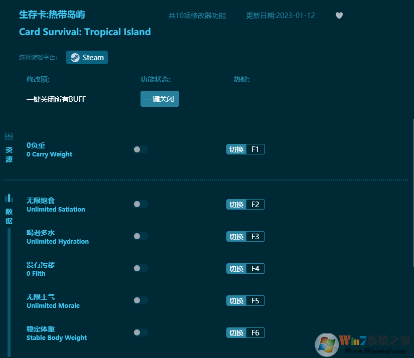 生存卡热带岛屿修改器功能介绍: