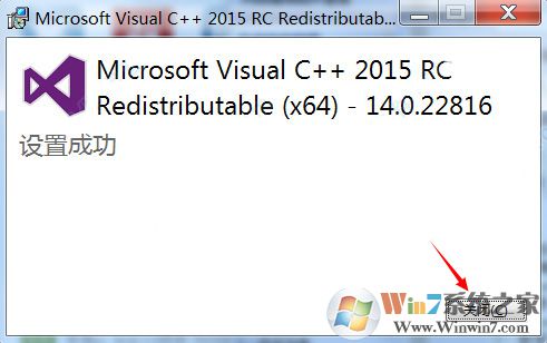 第三步:vc++2015运行库正在安装,等待安装完成后,点击关闭,退出安装向导(如图所示)。