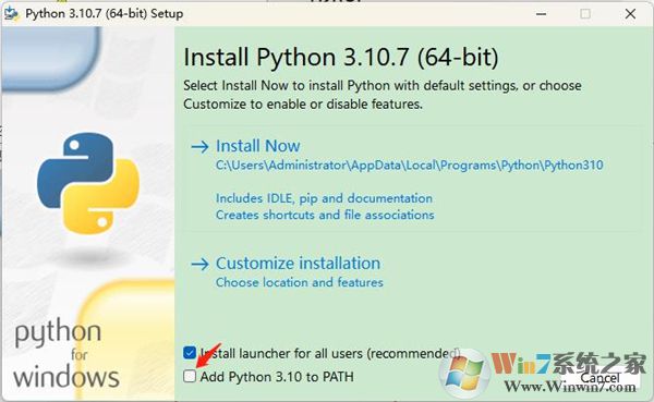 2、勾选“Add Python 3.10 to PATH”,然后点击【Customize installation】