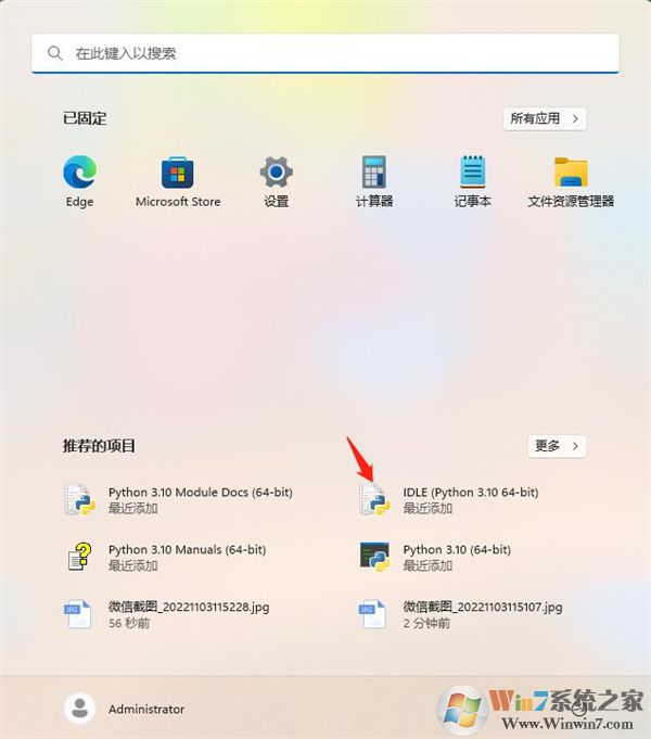 8、返回电脑桌面,找到Python3.10图标,鼠标右击选择【以管理员身份允许】,打开IDLE Shell 3.10.7软件,英文版界面如下:
