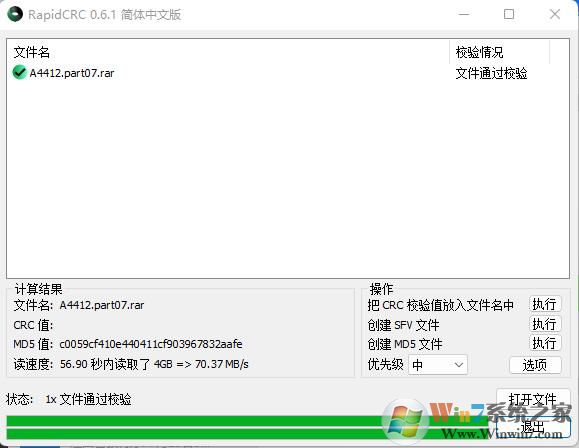 2、由于文件较大,可以先行双击下方的校验文件是否损坏.exe程序,如图所示,等待检测完成