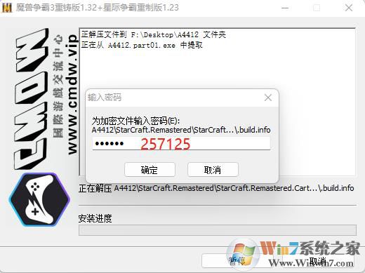 4、此时返回游戏文件夹,双击a4414.part01.exe程序,进入游戏解压界面,输入解压码“257125”