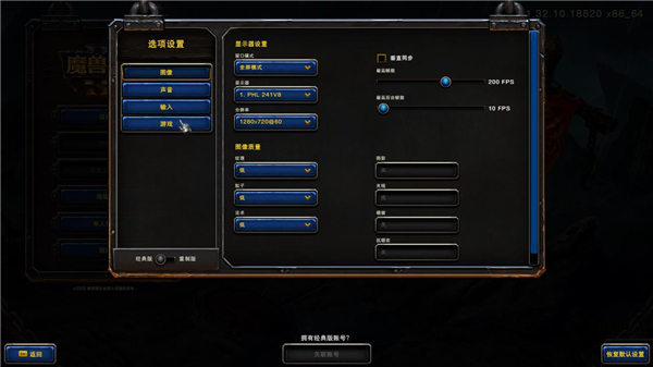 10、在设置图像选项中,玩家可以根据自身情况开启关闭全屏、分辨率等设置