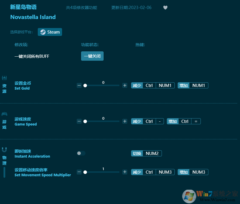 新星岛物语修改器功能介绍:
