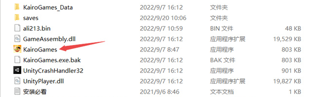 1、将本站下载的压缩包全部解压,双击“KairoGames.exe”进入游戏;