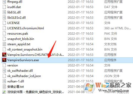 2、接着打开解压所得文件夹,找到VampireSurvivors.exe游戏程序直接双击打开;