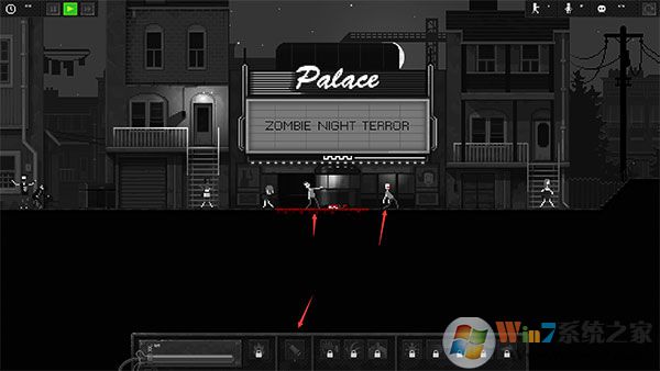 右上黄框为当前目标情况,分别是感染的人类、剩余的人类以及僵尸/死亡僵尸的数量。