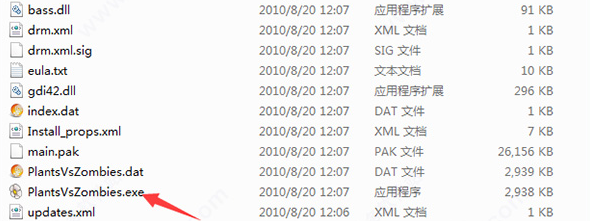 2、解压后,找到文件夹中的“PlantsVsZombies.exe”文件即可打开游戏,无需安装;