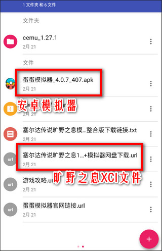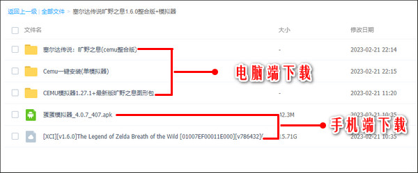 2、这里面有手机端的【蛋蛋模拟器】以及【旷野之息1.6.0+2DLC】XCI整合版ROM。如果你想用手机玩,那么请准备一台cpu性能靠近高通骁龙888的设备来运行【蛋蛋模拟器】,并且下载好【旷野之息1.6.0+2DLC】XCI整合版ROM文件。
