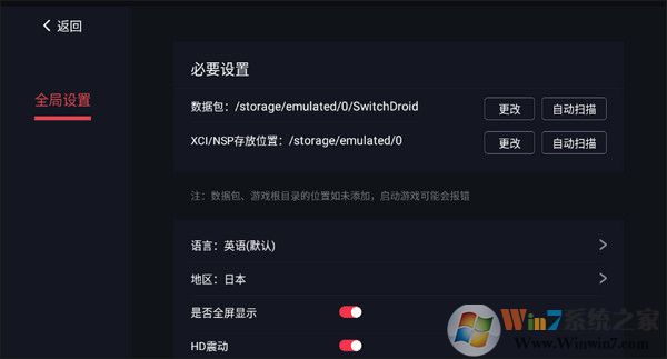 4、打开设置可以查看数据包、XCI游戏ROM文件的存放位置,将对应的文件放进去就好了