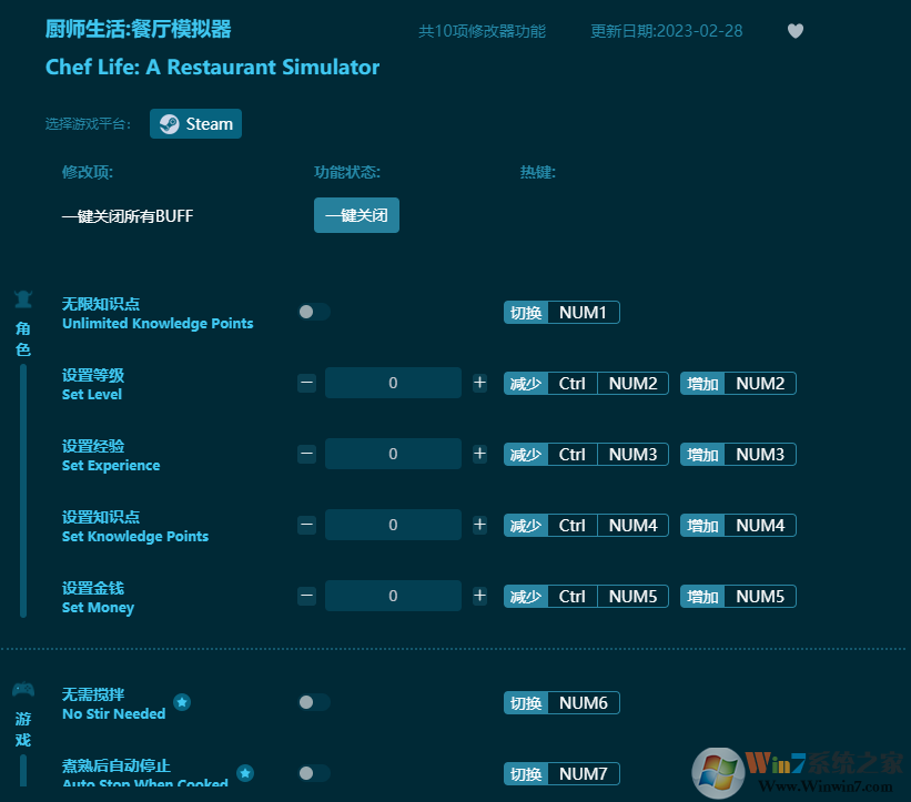 厨师生活餐厅模拟器修改器功能介绍: