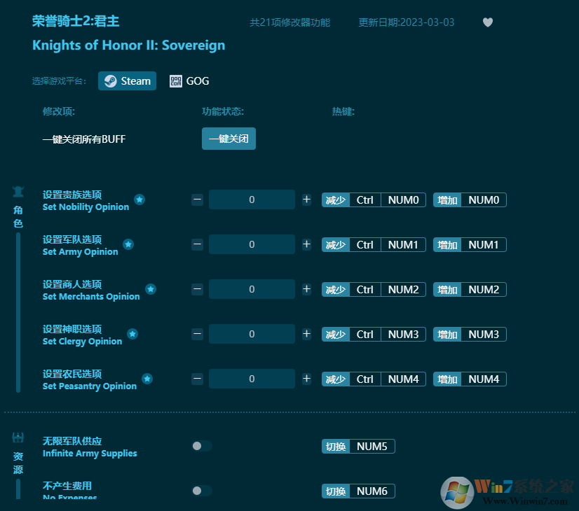 荣誉骑士2君主修改器功能介绍: