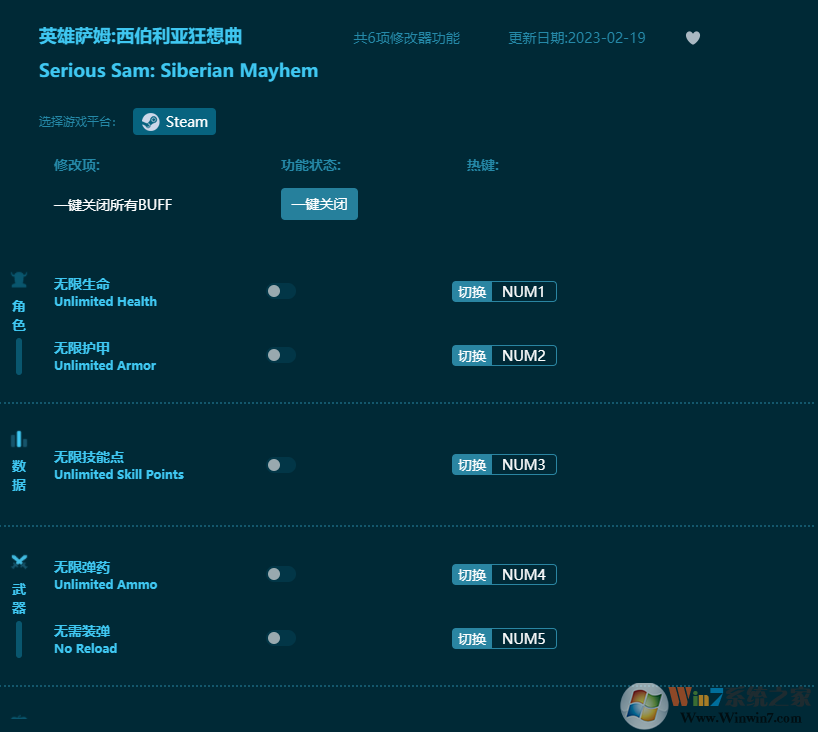 英雄萨姆西伯利亚狂想曲修改器功能介绍: