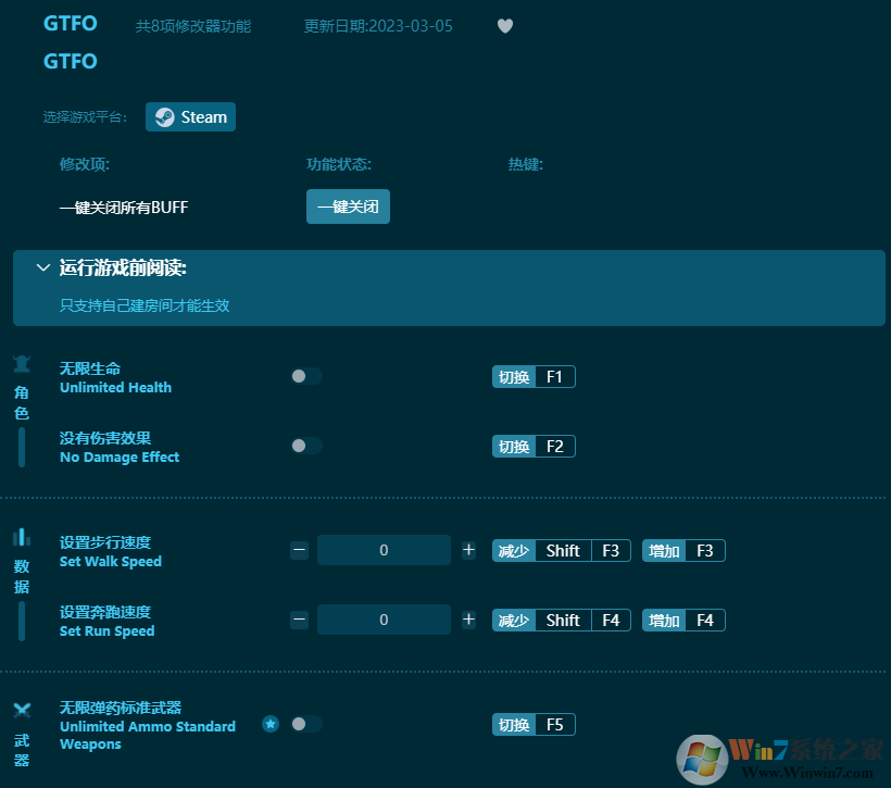 1、下载GameBuff_xtzj7.exe后请先进行安装,然后搜索“《GTFO》”游戏;2、使用前先退出杀毒软件井关闭Windows Defender