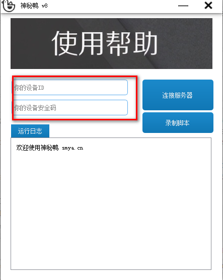 二、安装完成后打开软件,输入用户的设备码点击连接服务器进行连接。