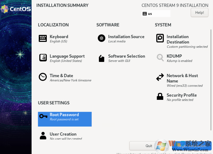 CentOS Stream9的安装程序还是用的原插件,但是安装成功后的桌面安装还是让人眼前一亮的。