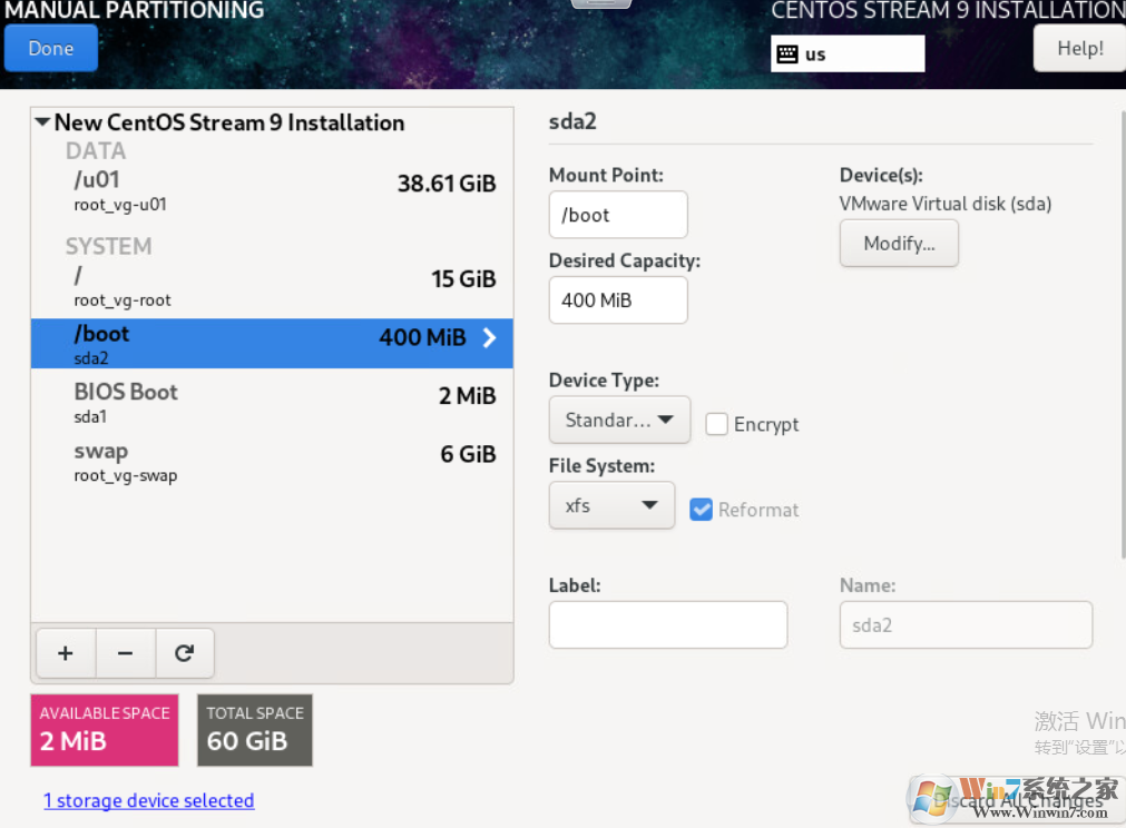 注意要把/boot分区设置成大于300MB,避免在安装阶段,因为/boot分区空间不足而出现如下面错误: