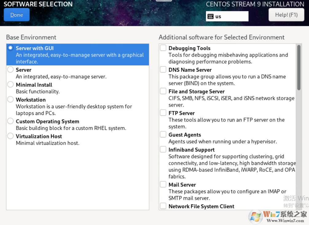 1、安装方式选择,选择菜单和以前的CentOS一模一样,只是在CentOS后面增加了Stream字样。