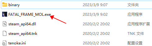 2、解压完成后,来到游戏目录下执行FATAL_FRAME_MOL.exe程序