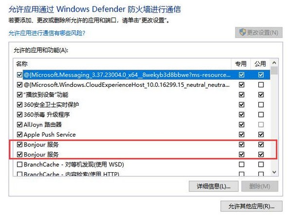 6、【Bonjour】添加方法同上,找到路径C:\Program Files\Bonjour\mDNSResponder.exe,添加即可;