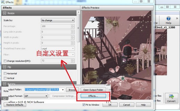 当然,你可以点击下面的【effects】按钮,对导出的GIF图像的质量进行调整,那样输出的文件就不至于太大了!