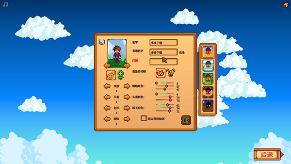 6、然后点击创建游戏后,选择好自己的名字农村等信息