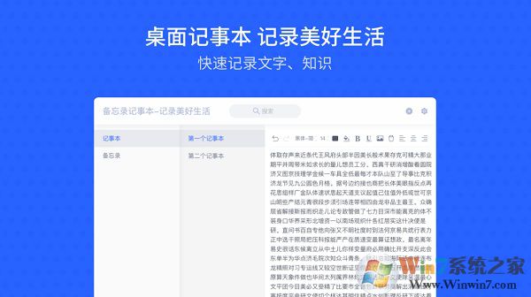 1、桌面记事本记录美好生活,快速记录文字、知识。