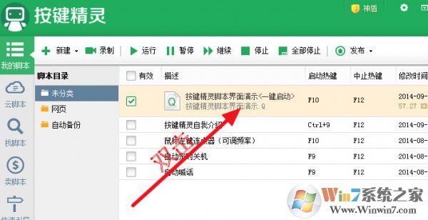 1、首先打开按键精灵,点击需要设置循环的脚本,再点击后方的【属性】;