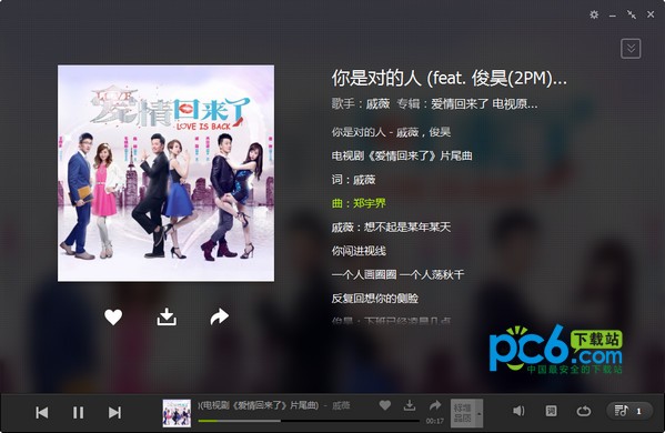 点击心形按钮,一键将喜欢的歌曲快速保存到云端的"我喜欢"歌单。