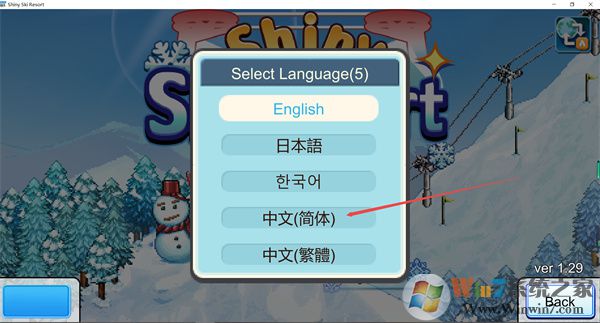 4、你可以将游戏语言修改为中文,完成调节后点击后退到首页;