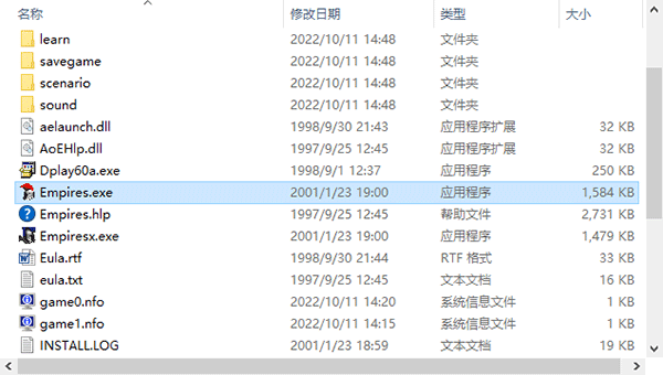 2、双击“Empires.exe”开始游戏。