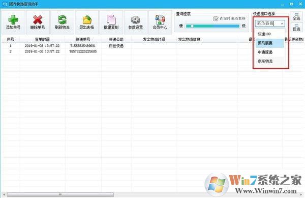 2、首先你可以在软件右上角选择快递查询的接口